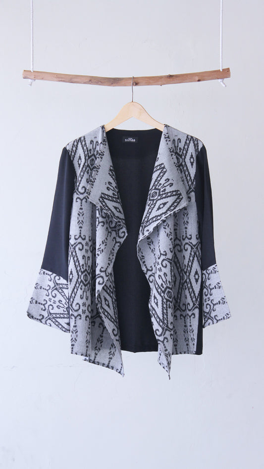 Sevinc Dark Brown Red Tenun Long Cardigan