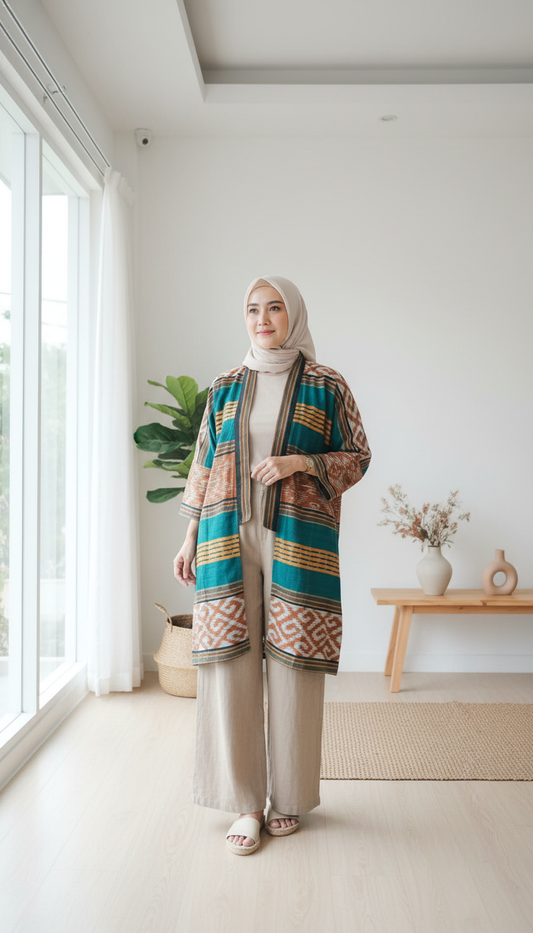Muna Green Tenun Long Cardigan