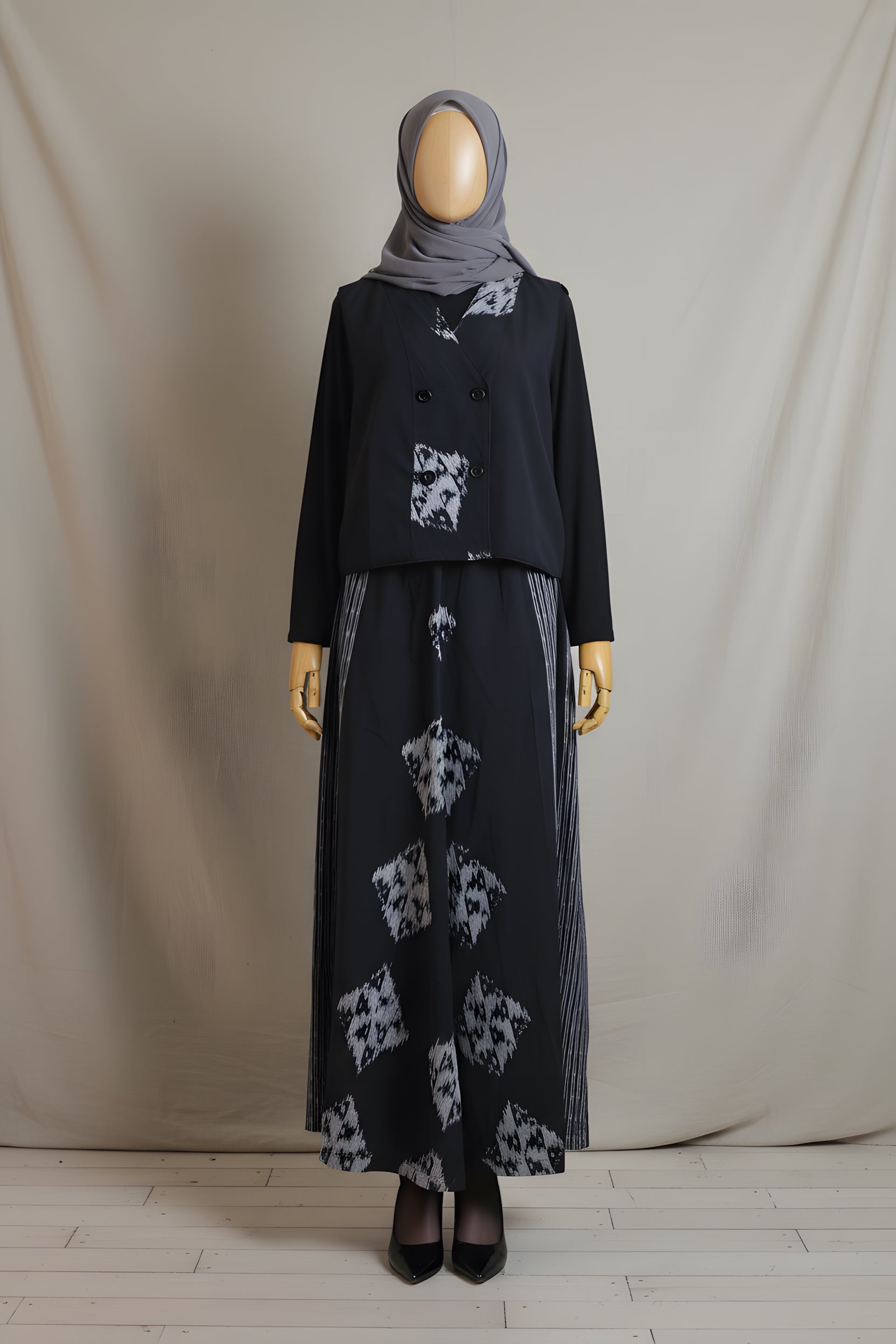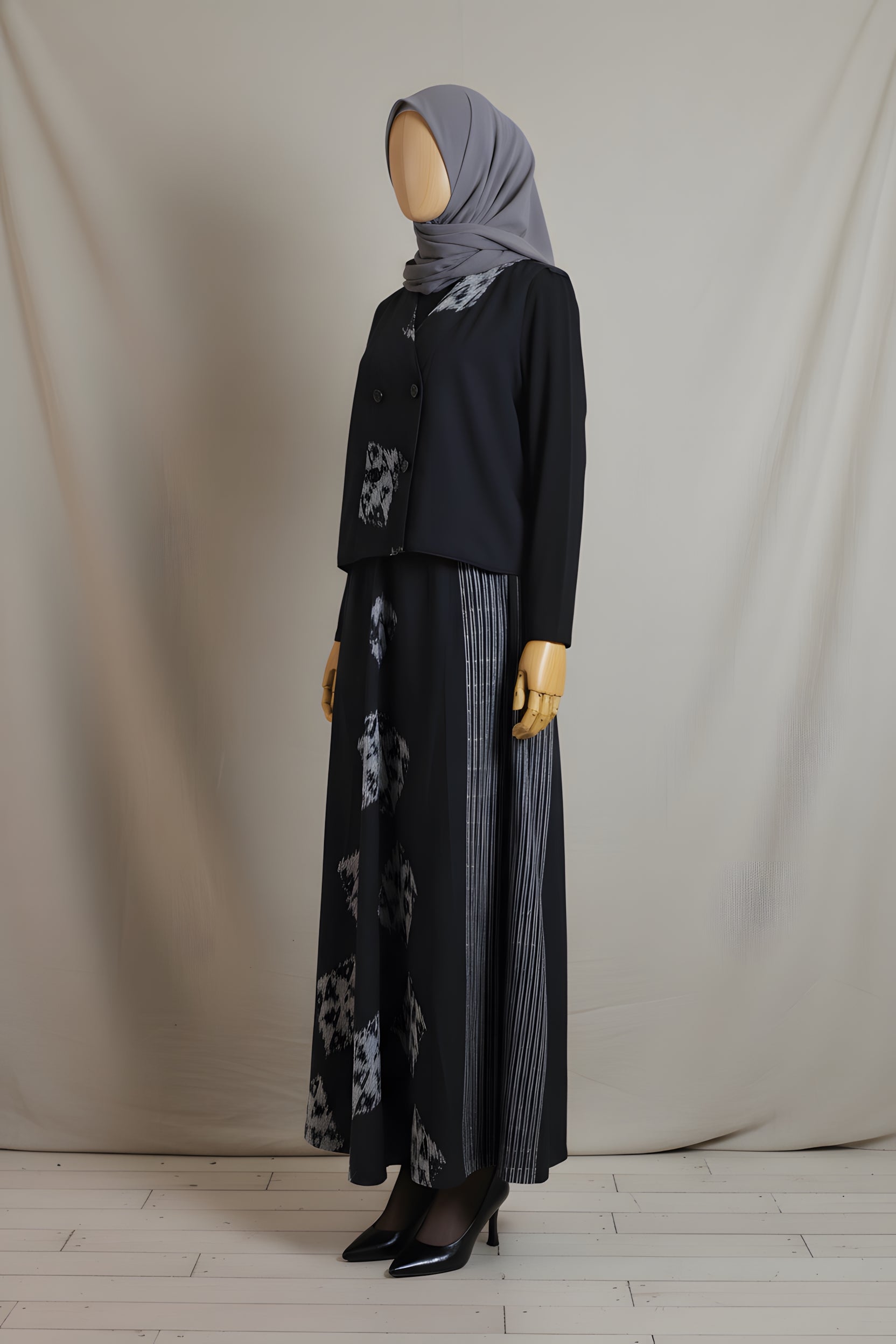 Lale Black Vest & Zulfa Black Skirt Tenun Set