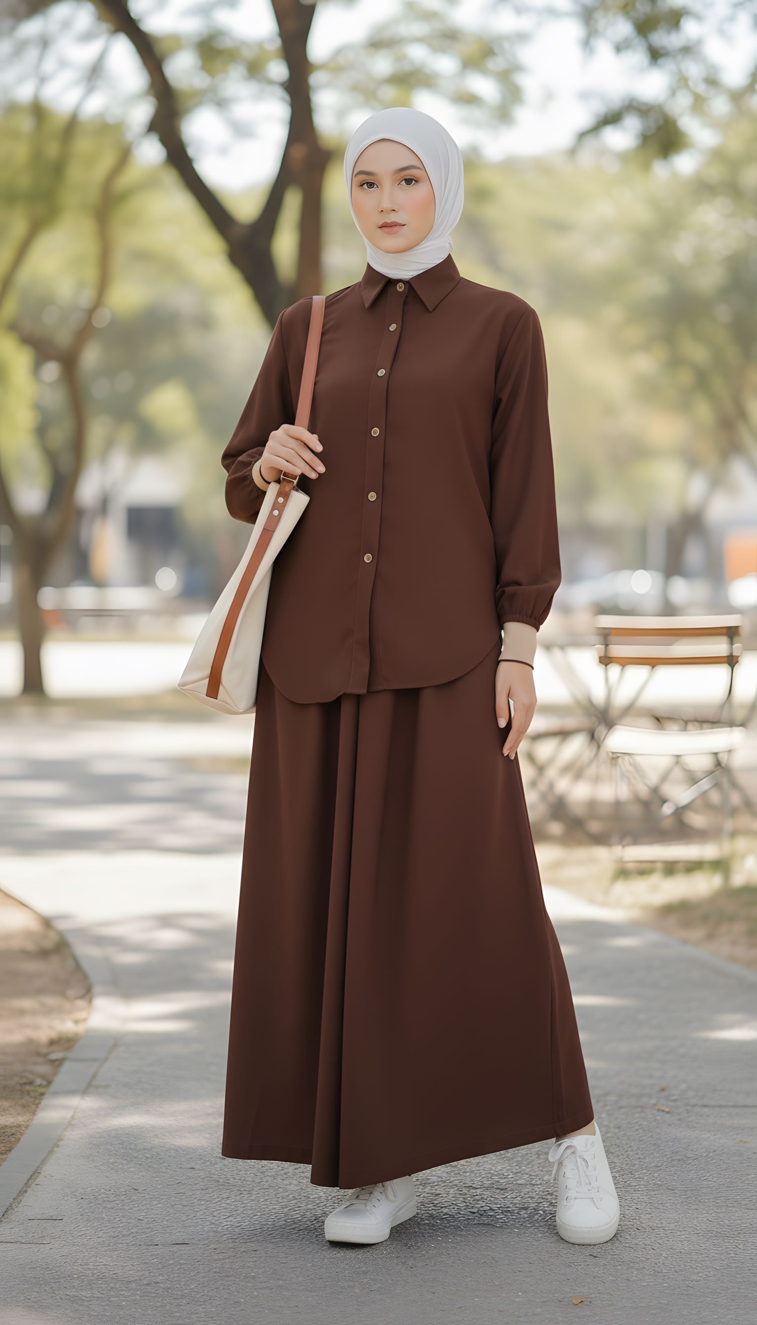 Elevate your wardrobe with our Nora Hannah Brown Basic Shirt. Made from Wolly crepe, this long sleeve shirt features a classic collar, open button, and side pocket. The rich brown color adds a touch of sophistication to any outfit. Upgrade your style with confidence and comfort.